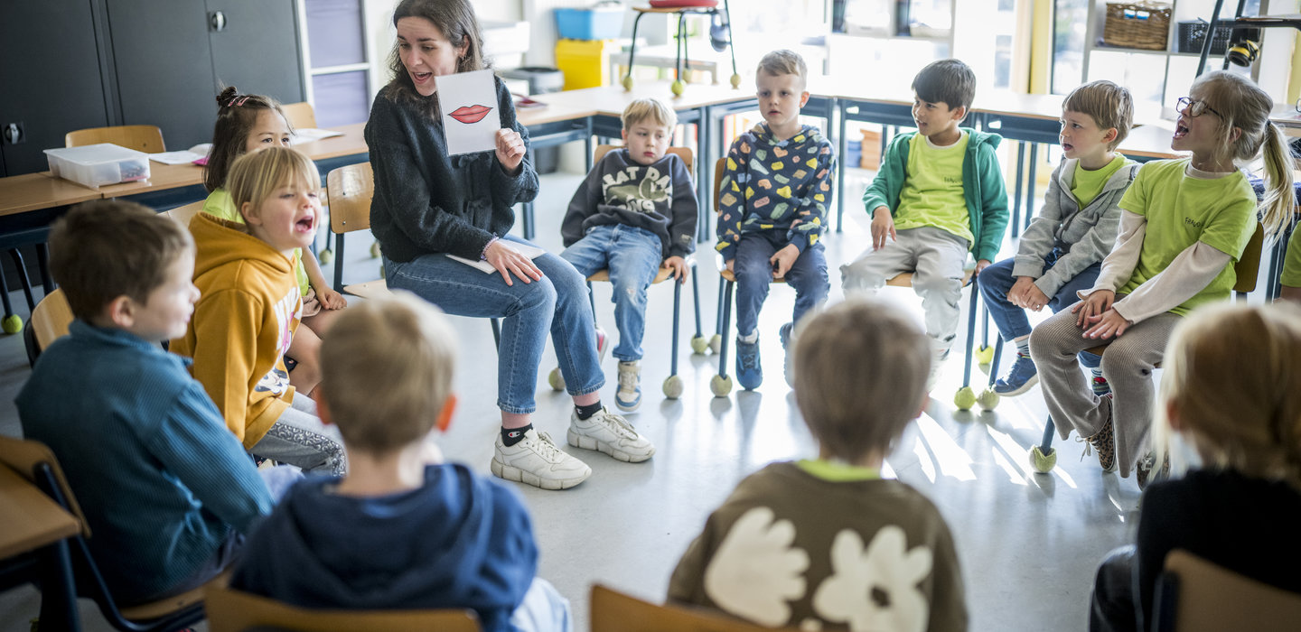 Kinderen mogen tijdens pauzes in het Nederlands vertellen over hun verjaardagsfeestje of andere dingen, maar basiszinnetjes zoals “mag ik naar het toilet”, “mag ik een koekje” of “mag ik mijn trui uitdoen” vragen ze in het Frans. Zo stimuleren we hen om in het Frans te denken en korte zinnetjes te maken, zodat ze merken dat ze met basiswoordenschat al veel kunnen bereiken.